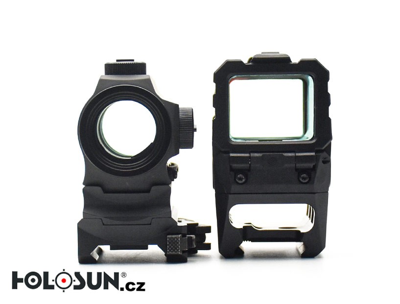 Tento kolimátor patří do nejvyššího segmentu značky HOLOSUN. Nalezneme zde solární panel, automatické vypnutí a probuzení pohybem. Osnovu lze přepínat mezi: tečkou 2 MOA, tečkou + obrazcem 65 MOA nebo lze zvolit pouze obrazec 65 MOA.